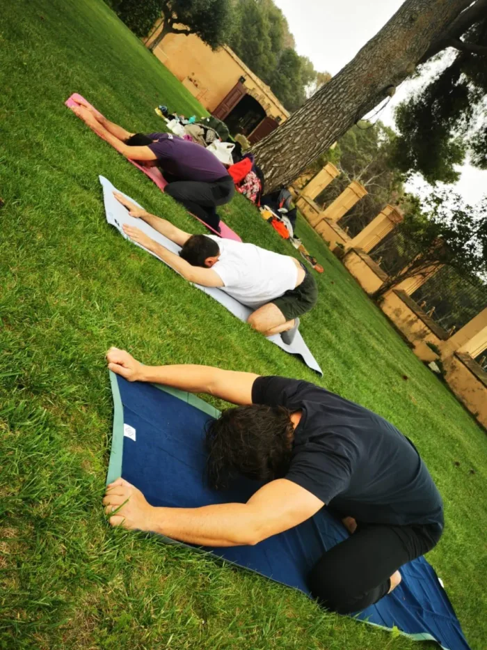 A continuación, nos dirigiremos al jardín donde disfrutaremos de una sesión de yoga con la profesional Susana Parellada rodeados de viñas y con vistas al mar.